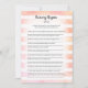 Aproveite o jogo do chá de fraldas Nursery Rhymes Quiz no fundo das listras de cor branca, coral e mole. Coelho bonito, branco e coelho nas costas com modelos criados para você.