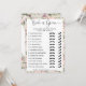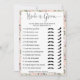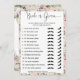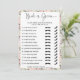 Um jogo personalizado para um chá de panela, "Who Knows the Casal Best?" convida seu convidado a responder perguntas pessoais sobre noiva e noivo. O convidado com as respostas mais corretas ganha. Este design de cartão de jogo coordena-se com o Chá de panela Jardim Rosa de Verão e tem uma fronteira de rosas cor-de-rosa e brancas e flores misturadas. A parte traseira da placa tem a borda floral rosa ao longo da parte superior e inferior do design.