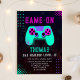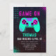 Este convite de aniversário de jogos é perfeito para qualquer jogador que adora celebrar com amigos e familiares. Ele apresenta o texto "GAME ON" e "THOMAS WITH ACHED NÍVEL 10" em uma fonte em negrito, com um nome personalizável. O convite também inclui um espaço para adicionar todos os detalhes importantes da parte. Este convite é perfeito para crianças de todas as idades, e é certo que será um sucesso para os seus convidados.