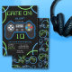 Um tema brilhante de controlador de jogos azuis e verdes e de festa de aniversário de padrões de fones de ouvido. Ideal para quem ama videos games, jogos de computador, ilustrações de temas de jogos de vídeo. Um tema de festa de aniversário perfeito para um jogador.