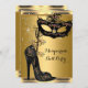 Joia da Máscara Dourada de Mascarada Negra. Mardi Gras, Máscara e Calçados de alto salto preto.Bola de Mascarada, Convite. Festa de Ocasiões. Personalize com seus próprios detalhes de eventos corporativos e idade. Modelo para Sweet 16, 16, Quinceanera 15, 18, 20, 21rua, 30, 40, 50, 60, 70, 80, 90, 100, Fabuloso produto para Mulheres, Meninas, Zizzago criou esta design, NOTE todas as imagens planas! Eles não têm brilho real, joias de diamantes ou Arcos reais!