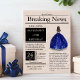 Lindo jornal estilo antigo, "Notícias de Última Hora", edição especial com modelos personalizáveis com uma menina de vestido formal. Seu lindo vestido em aquarela é de cor azul-marinho com detalhes de lantejoulas falsas.