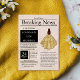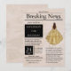 Lindo jornal em estilo antigo, "Notícias de Última Hora", edição especial com modelos personalizáveis com uma menina de vestido formal. Seu lindo vestido em aquarela é de cor dourada com detalhes de brilho falso.