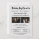 Este convite de casamento de jornal, normal, minimalista e facilmente personalizável, vai atrapalhar seus convidados e dar as notícias importantes do dia do casamento de que eles precisam. É um convite único para o casamento que imita os jornais antigos com ornamentado, a tipografia retrógrada no cabeça do leme. Em nome do jornal, "Wedding Day Chronicle", há detalhes importantes sobre a data, hora e local do casamento. A primeira página anuncia, "VOCÊ É CONVIDADO!" em todos os bonés, com duas fotografias da noiva e do noivo e ainda mais detalhes sobre sua cerimônia de casamento. Os prompts editáveis permitem que você mantenha as informações sendo comunicadas como estão ou as coloque em suas próprias palavras. O verso do convite fornece um código QR com espaço e instruções para adicionar mais, se necessário. Quase todo o convite é personalizável. Parabéns de casa juntos!
