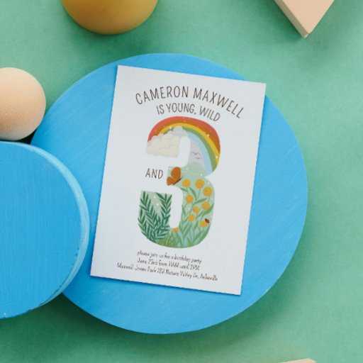 Marque o terceiro aniversário do seu pequeno explorador com este convite moderno, inspirado na natureza e ilustrado com fácil personalização de texto e cores neutras em termos de gênero, como o verde-menta.