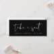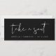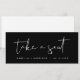 Esta placa de cabeçalho de um assento apresenta uma fonte manuscrita escura e um design moderno minimalista com uma combinação cor escura e branca. Edite facilmente o texto inferior e altere todas as cores para corresponder ao seu evento.