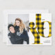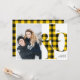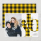 Apresentando uma xadrez de búfalos amarelo e preto típica / palavra padrão verificada "Joy" esta placa moderna de gingham inclui um grande espaço vertical à esquerda para você obter a melhor foto de retrato e texto preto que pode ser personalizado. Fácil de personalizar, faça uma impressão de excelente com este cartão de saudação ainda moderno e rústico. A cor amarela pode ser facilmente alterada para ajustado do seu esquema de fotos coloridas.