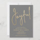 JOYFUL in a faux gold foil script is featured on these grey party invitations, perfect for any Christmas holiday occasion. MATCHING items in our collection.