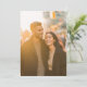This wedding invitation features a warm, intimate design with two individuals standing close together against a softly blurred cityscape background. The color palette is dominated by golden hues from the sunlight, creating a joyful and inviting atmosphere. The photographic art technique captures a candid moment in a realistic style, emphasizing the genuine connection between the subjects. The overall mood is one of happiness and closeness, making it perfect for celebrating love and togetherness on your special day.