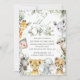 Invite friends and family in style and set the tone for your special day with this charming birthday invitation. Design features jungle animals (giraffe, monkey, zebra, lion, elephant, cheetah, meerkat, rhino) and eucalyptus leaves on white background.