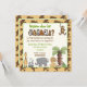 Convite de festas de safari dos animais da selva-coroa, com alguns animais da selva: leão, girafa, elefante, zebra, macaco, cobra, palmeira e a palavra SAFARI em letras padronizadas com padrões de impressão animal. Há uma armação amarela e marrom à volta deles. Um adorável excelente design para festas de aniversário infantil, rapazes e raparigas. Esquema de cores; castanho, amarelo, cinza, verde, preto, branco.