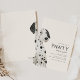 Celebrar com um convite à festa de aniversário temática para cães, com uma ilustração adorável de um filhote Dalmaciano brincalhão na frente que se envolve nas costas para um olhar encantador e coeso. A frente do convite mostra os detalhes da festa — data, hora, local e informações de RSVP — integrados de forma elegante ao design de cães brancos, criando um sentimento convidativo e festivo. Este belo convite captura a diversão e a alegria da ocasião, fazer perfeito para uma comemoração memorável de aniversário.