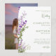 Junto com nosso Convite de Casamento de Pais. Fundo Branco. Entre em contato com o Designer para fazer mudanças neste modelo para atender às suas necessidades de casamento. Texto verde. Greenery. Foto do casal. Lavanda de aquarela.