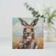 pintura de um canguru fofo comendo um sorvete. Aproveite as férias de verão. Cartão personalizável, altere o texto para seu gosto