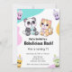 Este doce panda bebê e tigre bebê estão a gostar de chá de bolhas para este convite de festas de aniversário de criança branco.