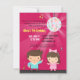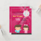 Coloque seus calçados dançantes e entre no entalhe! É hora de dançar para a festa de aniversário! Um convite de festas de dança colorido com um menino e uma garota fofos com arcos cor-de-rosa tremendo e dançando no chão de dança. Uma bola de disco brilhante pendura no teto exibindo luzes coloridas e faíscas no fundo com notas musicais decorando o convite. Uma festa de planejamento fácil e divertida! Personalize facilmente com os detalhes do seu partido.