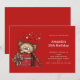 Um convite de aniversário com um desenho fofo de um gatinho espiando de dentro de uma caixa de presente.