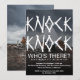 Toc que está lá Foto de convite do Festa de Halloween. Você pode personalizar todo o texto e a foto neste convite. Este belo e único convite personalizado para o Dia das Bruxas vem com um envelope branco. Está escrito em tipografia branca elegante. Você pode personalizá-lo pressionando o botão (Personalizar). Se quiser personalizá-lo mais, vá para a opção (Clique para personalizar mais). Dimensão: Envelopes de 5" x 7": Branco Personalizável: Sim, Crie o seu. —A Perfeição—