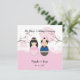 Kokeshi Couple Japanese Inspired Themed Traditional Landscape Gardens in Pink Wedding Invitation Card.