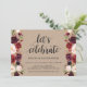 Este cartão de convite temático floral borgonha rústico é perfeito para a celebração da recepção / festa do seu casamento. Adicione seus detalhes em fonte / letra preta correspondente.