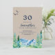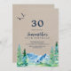 Este convite para a aniversário de 30 anos da Montanha Rochosa é perfeito para uma festa de aniversário ao ar livre. O design apresenta uma paisagem de natureza selvagem pintada, azul e verde, com pinheiros de aquarela, pássaros e montanhas em um fundo falso de papel kraft claro. Por favor, observe que isto não está impresso em papel kraft real. É um gráfico de alta qualidade feito para parecer papel kraft.