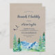 Este brunch kraft Rocky Mountain e o convite à espuma são perfeitos para um chá de casamento ao ar livre. O design apresenta uma paisagem de natureza selvagem pintada, azul e verde, com pinheiros de aquarela, pássaros e montanhas em um fundo falso de papel kraft claro. Por favor, observe que isto não está impresso em papel kraft real. É um gráfico de alta qualidade feito para parecer papel kraft.