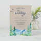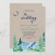 Este convite de casamento para o destino de Rocky Mountain é perfeito para um casamento ao ar livre. O design apresenta uma paisagem de natureza selvagem pintada, azul e verde, com pinheiros de aquarela, pássaros e montanhas em um fundo falso de papel kraft claro. Por favor, observe que isto não está impresso em papel kraft real. É um gráfico de alta qualidade feito para parecer papel kraft.