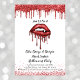 Convite de festas adulto de vampiro de Halloween editável. Design apresenta lábios vermelhos pingando com sangue e presas de vampiro em um fundo branco! O brilho do brilho vermelho, o brilho vermelho e os brilhos enquadram a placa. Personalize o texto e altere o estilo e a cor da fonte para se adequar. O brilho não é "real", mas sim um efeito impresso.