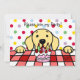 Festa de aniversário de desenho do Labrador Amarelo Convide para amantes de cães que amam o Labrador Retriever Amarelo. convite de aniversário de desenho de cachorro muito fofo. bolinhas coloridas. Você pode personalizar texto e muito mais! Cartum único e engraçado Labrador Retriever criado por Naomi Ochiai do Japão.