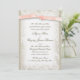 Antiga elegância rústica do país, vintage inspirada com um romântico rendas brancas e arco rosa pincelado sobre um visual de burlap tone leve. Todas as partes deste convite são impressas. Não há uma verdadeira braçadeira, renda ou fita conectada.
