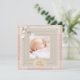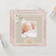 Bela renda rosa vintage e marfim com pérolas convite de foto de bebê menina para batismo e batizado. Adicione seus detalhes na frente e no verso adicionando detalhes do evento, estilo de fonte, tamanho e cor da fonte e texto.