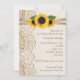Lace branco elegante, fita, girassóis e casais de noivado de burlap convite para chás com rendas brancas na burlap natural bege ou hessiano com duas fitas de cetim cruzadas e girassóis. Texto em castanho. Observe que rendas, burlap e girassóis são todos "impressos" e não tecidos reais ou flores. Esta elegante, sofisticada e romântica design com uma essência rústica faz parte de um conjunto de casamentos e é perfeita para um chic country ou um casamento outono/outono ocidental com uma paleta de cores neutras.