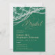 Um chá de panela moderno, elegante e clássico, com um fundo verde esmeraldo, cordas de pérolas e brilho (são efeitos digitais) e tipografia moderna numa matiz dourada, assim como uma delicada borda branca. Um design de "renda e pérolas" chico para uma noiva.