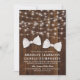 Com um fundo de madeira rústica, luzes cintilantes de corda românticas, dois laços brancos clássicos de noivo e os detalhes do seu casamento.