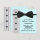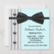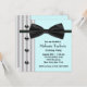 Convites de festa de aniversário azul turquesa de laço de gravata preto para mulher de smoking preto e branco.