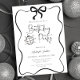 Celebre com estilo este convite de aniversário com laço preto de caligrafia moderna. Concebido com um script elegante feito à mão e um clássico sotaque de laço preto, este convite de festa elegante é perfeito para aniversários marcantes, festas de debutante ou celebrações sofisticadas de adultos. O layout minimalista combinado com caligrafia ousada cria um visual atemporal fácil de personalizar com os detalhes da sua festa.