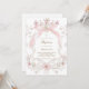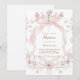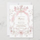 Convites laço rosa e flores moldura menina Batismo