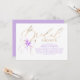Celebre a noiva com este convite de chá de panela romântico roxo e dourado, apresentando caligrafia elegante e um laço de aquarela suave acentuado com tons delicados de lavanda.