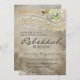 Laço rústico o chá de panela afligido convida. Um chá de panela muito elegante e rústico do chique que caracteriza flores verdes e de creme diferentes com enfeites do metal neles e em torno deles, pérola como elementos enfeita a parte superior e o laço do Victorian da parte inferior e do rico e um pássaro em um ramo decoram este convite na parte superior um fundo marrom rústico. Grande um chá de panela afligido do vintage laço rústico para esses rústico ou casamento vintage e estes convida é orçamento amigável mas olha impressionante!
