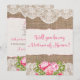 Clique em "Personalize!" para mover/ajustar o texto e as cores! Para a noiva rústica/de campo! Uma maneira elegante de pedir às suas garotas para estarem ao seu lado no grande dia! Com tecido e renda com rosas e peônias cor-de-rosa bonitas Convites, Cartões para a Festa de Noivado, Postagem, Envelopes e mais também disponíveis na minha loja. ©2015 Weddings*n*Whimsy