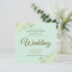 Este simples convite para o casamento apresenta um fundo verde-claro ou nu colorido de menta com restos de ouro de folha de folhas sujas e espirais nos cantos. A redação é formal com a elegante escrita em letras douradas.