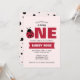 Celebrate your little lady’s very first birthday with this charming ladybug-themed invitation, designed in a sweet, modern style that’s perfect for a girl’s first birthday party. The front features a soft blush pink background, bold red typography highlighting the word “ONE,” and an adorable ladybug illustration that adds a playful, whimsical touch. Clean fonts and a simple layout keep the design polished while still feeling fun and kid-friendly.