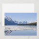 A neve cobriu picos das montanhas Rocky refletidos no lago meio congelado Maligne - Parque Nacional Jasper, Alberta, Canadá. A foto foi tirada na primavera.