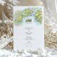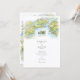 Celebrate a romantic Lake Como celebration with this two-sided watercolor destination wedding invitation. The artwork features a hand-painted illustrated map of Lago di Como, complete with shimmering blue water, terraced hillsides, and storybook villages labeled Bellagio, Tremezzo, Varenna, Lenno, Como City, and Cernobbio. Iconic villas, a lakeside cathedral, winding roads, and tiny ferries are rendered with delicate ink line work and soft washes of green, gold, and sky blue, giving the design the charm of a vintage travel sketch.
