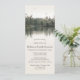 Esta carta de convite elegante para a reunião familiar de acampar ao lado do lago apresenta evergreens distantes e estruturas rochosas refletidas na superfície de um corpo de água calmo e levemente ondulado sob um céu coberto com ospreys ou águias voando à distância, do ponto de vista de um remador sentado num caiaque sobre a água | a imagem foi criada da minha própria fotografia pessoal de caiaque | Parte da reunião da família rustica Lakeside de katzdzynes / coleção de retirada de negócios >> https://www.zazzle.com/collections/119413093835947250