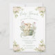 Pequeno borrego de aquarela bonito numa cesta cheia de flores misturadas. Sorvete suave e hidrangeas embebidas com molho de folhas verdes, assim adorável convite para chás de fraldas. Tão fofo para aquele menino ou chá de menina. 100% de satisfação do cliente com o "Zazzle"