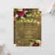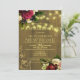 Um belo convite à churrascaria tradicional, rústico, com flores, buquês de rosas escuras de burgundy escura, vermelho vibrante e creme de pêssego, e peônias, cordas de luzes cintilantes e um roteiro de caligrafia em ouro sobre um fundo de madeira bege castanho. +++++++++++ O convite também é adequado para qualquer outra noite de verão ou outono no país rústico / quintal exterior / festas de fazendas, comemorações ou aniversários.