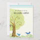 Esta deliciosa design de árvore branca tem galhos de espiral e um par de pássaros azuis, com uma mão pintada por espirais divertidos e uma dupla borda no topo. O reverso tem a informação de nascimento e a mesma design sem a árvore. VOCÊ TAMBÉM PODERIA GOSTAR DE: