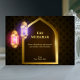 Cartaz de saudação de Ramadã ou Eid Mubarak, com uma lanterna colorida com padrão árabe e uma janela de ouro, tema para celebração e festival islâmicos. Ditos contendo orações para aqueles que irão jejuar durante o mês do Ramadã. Todo texto pode ser facilmente personalizado.