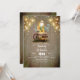 Lanterna e luzes de cordas, barril de madeira velho, girassóis amarelos... este é o convite mais bonito para o seu último verão, chá de panela de outono